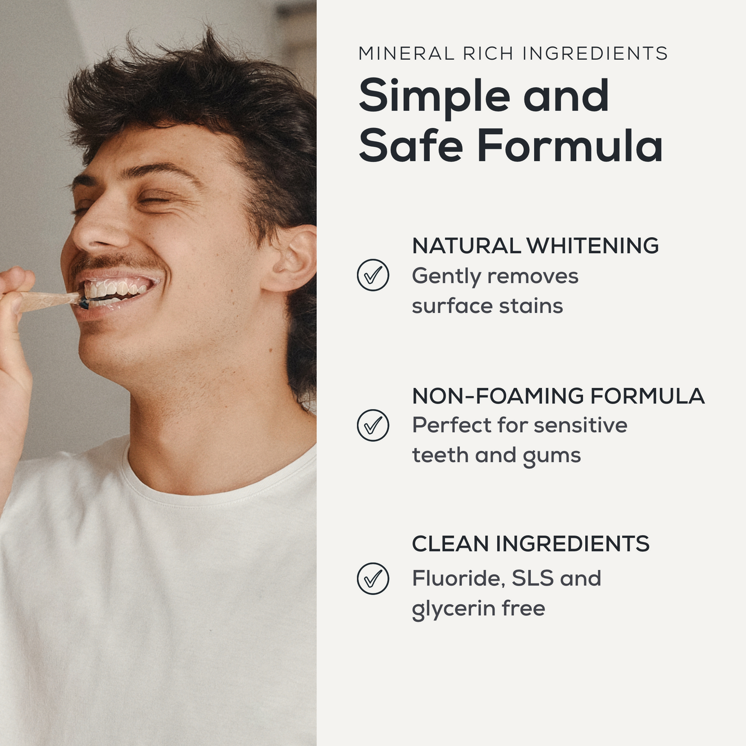 Non-foaming, SLS-free & glycerin-free, gentle on enamel